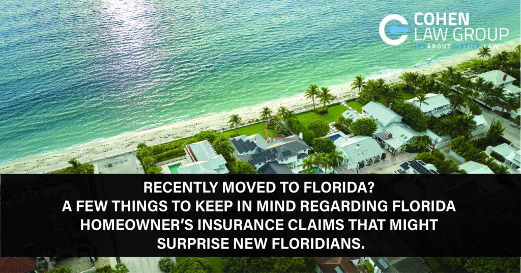 Recently Moved to Florida? A Few Things to Keep in Mind Regarding Florida Homeowner’s Insurance Claims That Might Surprise New Floridians.